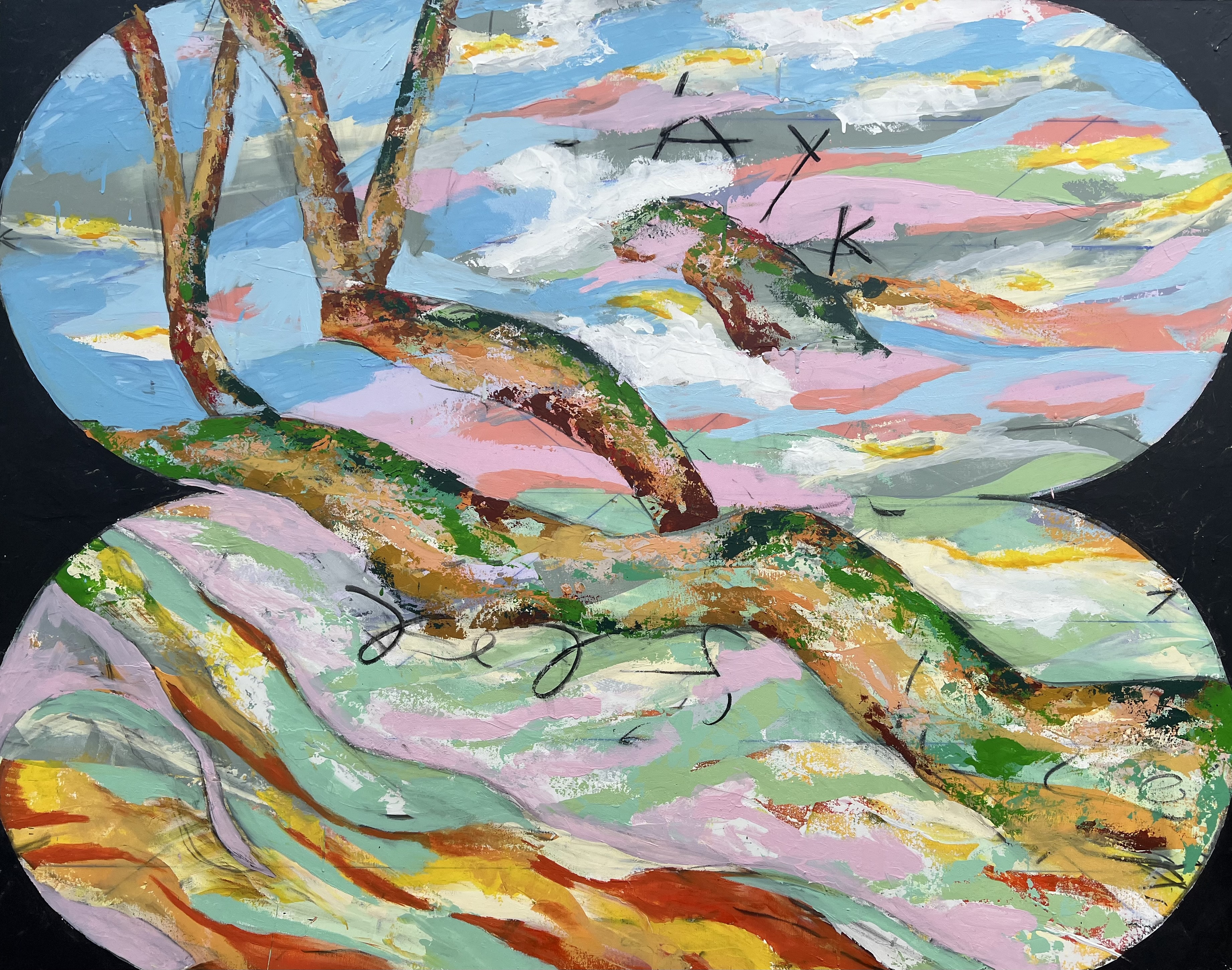 Landscape With Swimmer House paint with acrylic on stretched canvas, 48×60″ (122 x 152 cm) 2023. Share this: Share on X (Opens in new window) X Share on Facebook (Opens in new window) Facebook Like Loading...